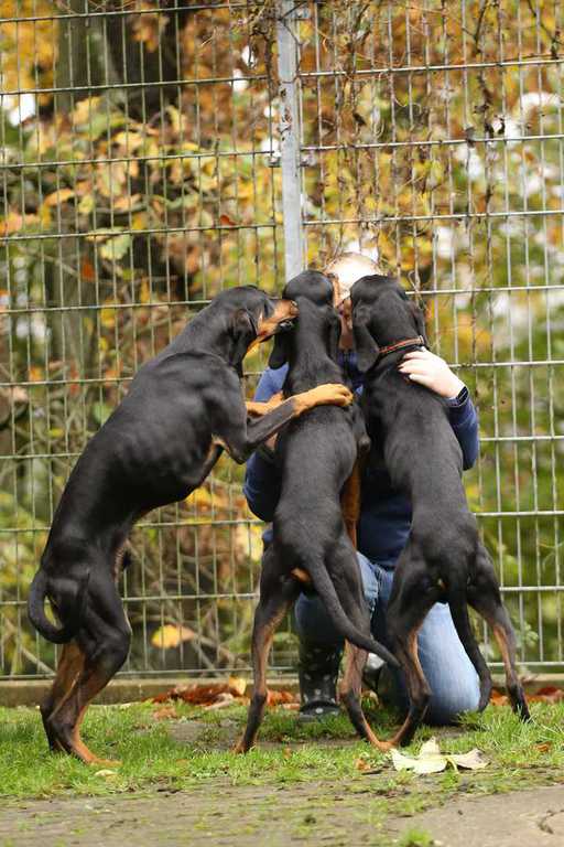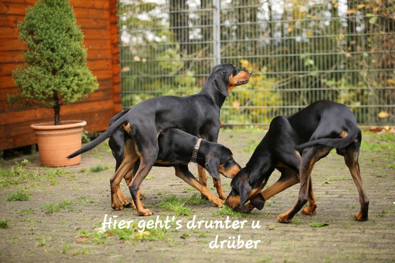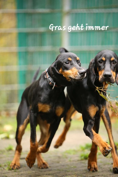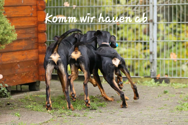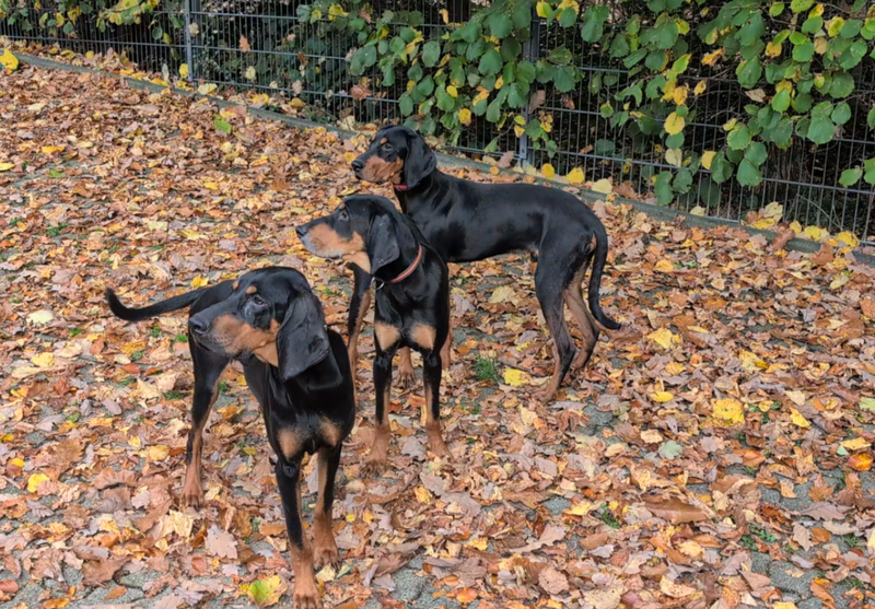 Diese drei agilen, sehr menschenbezogenen, aber auch sensiblen Jungs sind Jura Laufhunde. Sie haben eine Höhe von etwa 55 cm. Theo und Leo sind etwa 11 Monate jung, Silvio dürfte etwa drei Jahre jung sein. Die drei sind ungeschliffene Rohdiamanten, die noch so einiges lernen müssen. Sie sind stürmisch, aber absolut lieb und verfügen über ein sehr gutes Sozialverhalten gegenüber Menschen und anderen Hunden.
