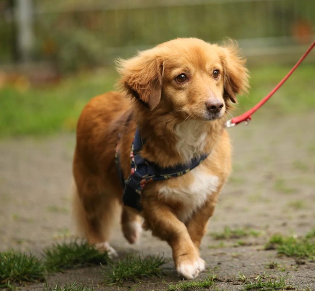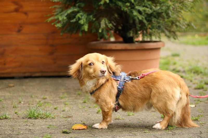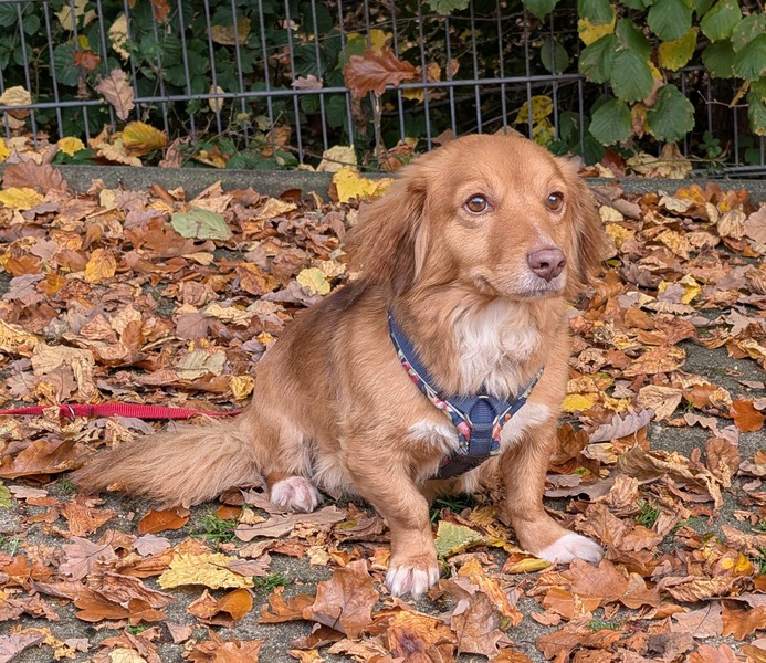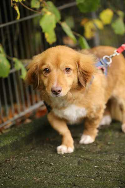 Jankee ist ein hübscher etwa 2 bis 3 Jahre alter Dackelmix-Rüde. Er hat eine Höhe von etwa 35 cm.