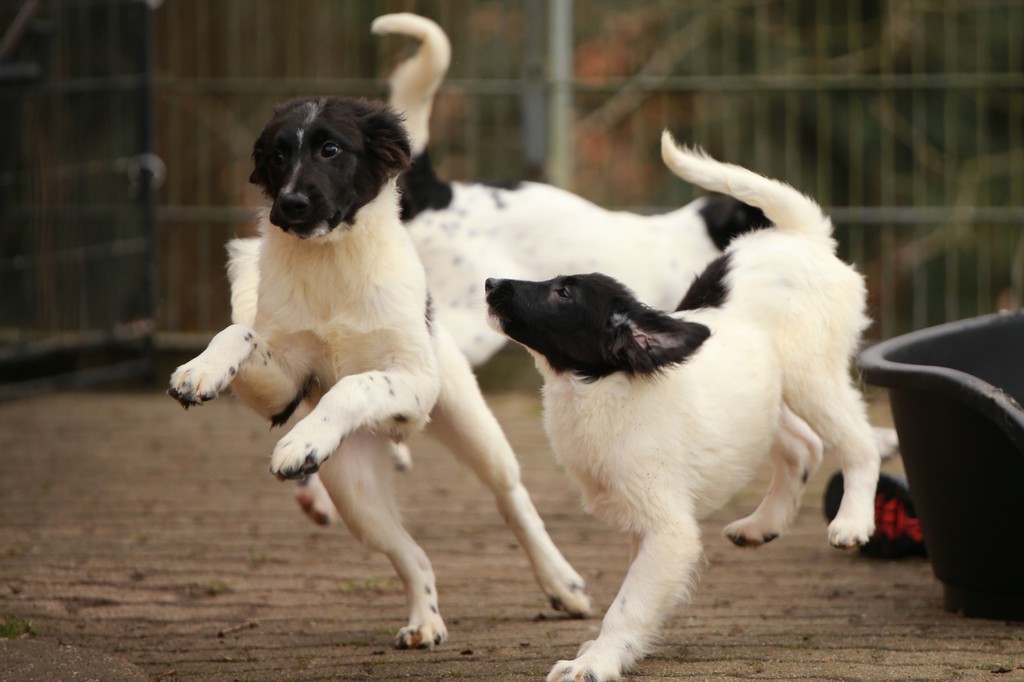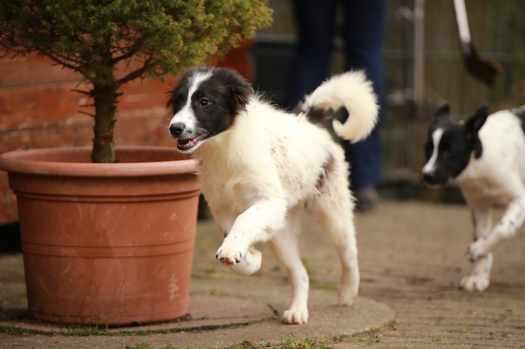 Die Welpen kommen! Diese hübschen Hundekinder sind 5 Monate alt. Die kleinen Wirbelwinde möchten jetzt die Welt kennenlernen und suchen Ihre für-immer-Familien. Alle sind sehr aufgeschlossen und welpentypisch verspielt. Sie werden mittelgroß (Rückenhöhe etwa 45 cm) werden.
