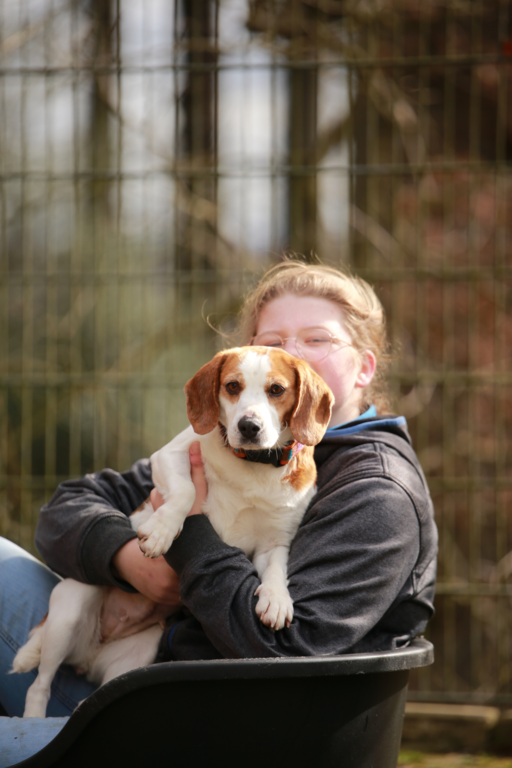 Daisy ist eine (kastrierte) Beagle-Mischlingshündin. Die süße Maus ist menschenbezogen und hat auch ein gutes Sozialverhalten anderen Hunden gegenüber.