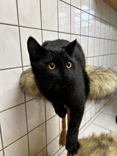 Simba ist ein kleiner etwa ein Jahr alter schwarzer Kater. Er sucht zusammen mit der etwa drei Jahre alten Nala (grau) ein gemeinsames Zuhause. Nala ist eine Scottisch Fold Katze (-Mix?). Beide wurden zusammen in einem Karton gefunden. Simba und Nala sind menschenbezogen und verspielt. Die beiden sind inzwischen kastriert.